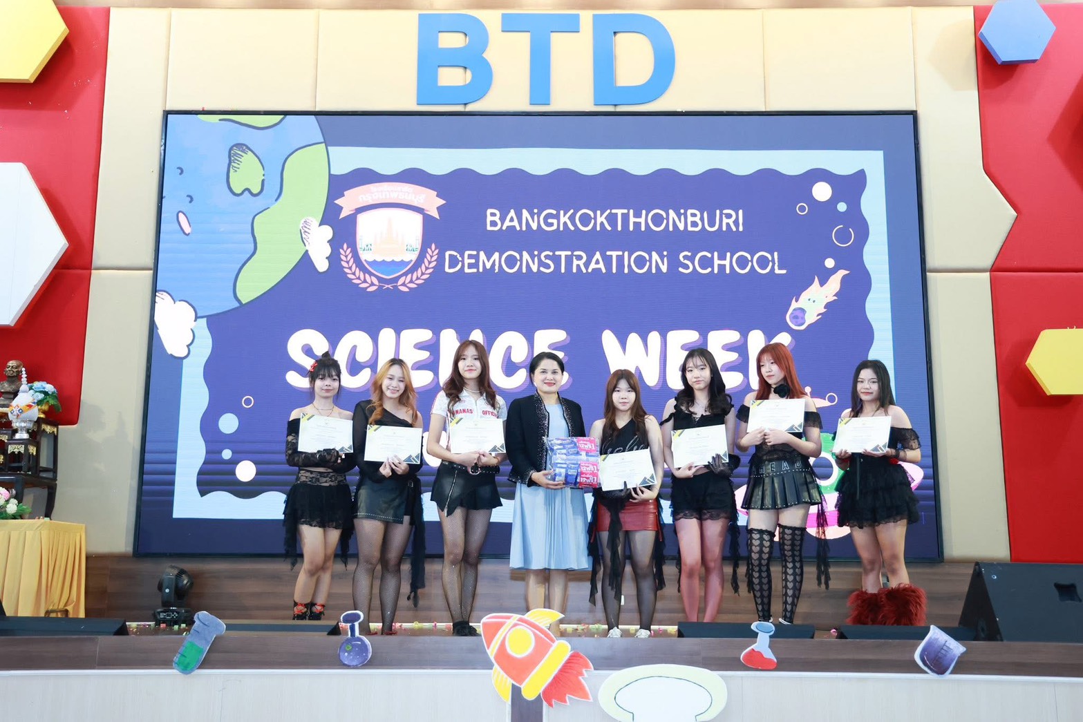 เมื่อวันที่ 18 สิงหาคมที่ผ่านมา โรงเรียนสาธิตกรุงเทพธนบุรี ได้จัดงานวันวิทยาศาสตร์แห่งชาติขึ้น โดยได้จัดกิจกรรมต่าง ๆ เพื่อสร้างความสนใจและเพิ่มพูนทักษะความรู้ด้านวิทยาศาสตร์ให้กับนักเรียนในฐานความรู้ต่าง ๆ อาทิ robotics & coding การผสมสสารจากพี่มัธยม และฐานการทดลองต่าง ๆ รวมไปถึงมีการมอบใบประกาศนียบัตรให้แก่นักเรียนที่ชนะการตอบคำถามทางวิทยาศาสตร์ ส่วนการแสดงบนเวทีก็มีมากมาย ทั้งการโชว์เต้นเพลง cover dance จากระดับประถมต้น ประถมปลาย และมัธยมศึกษา รวมไปถึงไฮไลท์ของงานนั่นก็คือการเดินแฟชั่นโชว์ชุด Recycle จากตัวแทนห้อง ซึ่งเราบอกว่าทุกชุดสวยงามอลังการ และมีไอเดียที่เก๋ไก๋มาก ๆ ค่ะ เป็นการนำของที่ไม่ใช้แล้วนำให้กลับมาฟื้นคืนชีพเป็นชุดสวมใส่ที่สวยงามและเท่ห์มาก ๆ เลยค่า